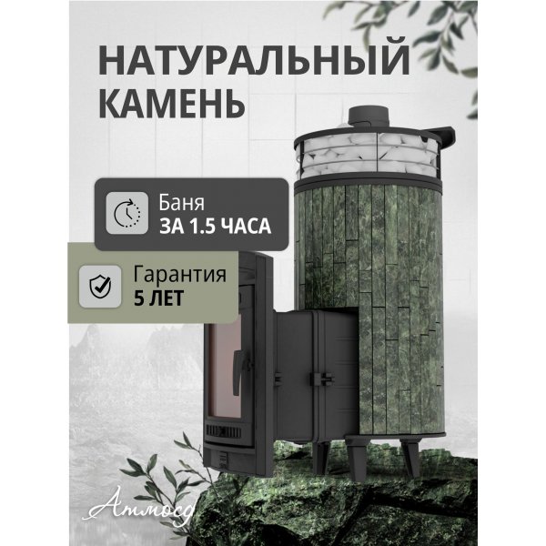Модель с увеличенной каменкой и повышенной производительностью. Ламели из змеевика по периметру внешней каменки не только обладают хорошими теплонакопительными свойствами, но и придают печи оригинальный внешний видРежимы - русская баня, сауна, хаммамОбъем парной: