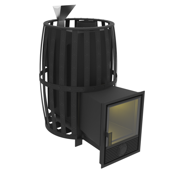 Печь-камин для бани "Витязь" 18 Д-1 (Закрытая каменка нерж, Сетчатый кожух)