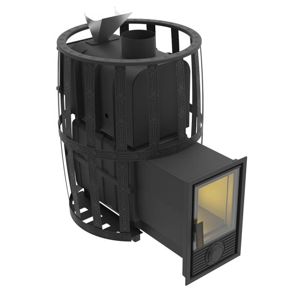 Печь-Камин для бани Воевода 15 Д-1 сетчатый кожух Закрытая каменка