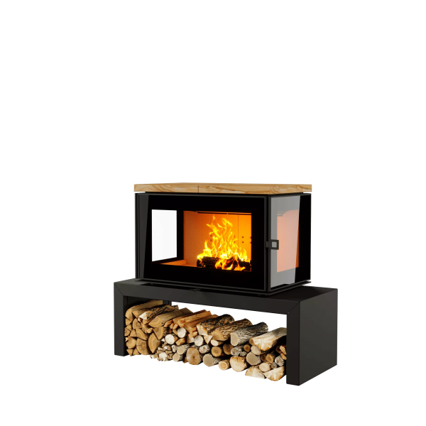 Печь-камин КУБ 3С 800 сочетает в себе эстетику, функциональность и экологичность. Её минималистичный корпус из стали, окрашенной в черный цвет, придает ей элегантный и современный вид.