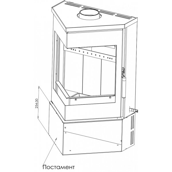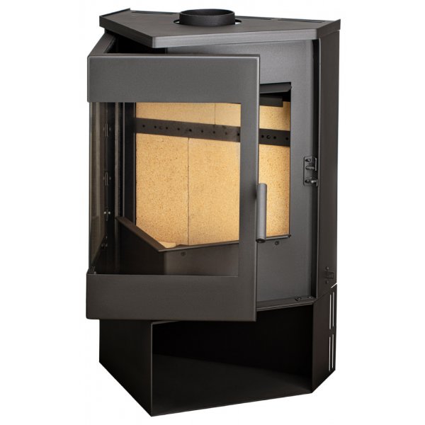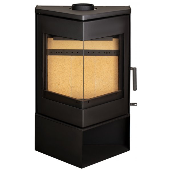 Стальная печь-камин Леман решена в нетрадиционном для отопительных приборов оформлении. Печь треугольной формы и рассчитана на подвесную установку (хотя никто не помешает поставить ее и на пол). Производитель позаботился о максимально возможном для конвекционной печи обзоре пламени - дверца занимает всю фронтальную поверхность и снабжена большим стеклом г-образной формы. Несмотря на компактные размеры и сравнительно небольшой вес, прибор способен обогреть помещение площадью до 60 кв. метров.