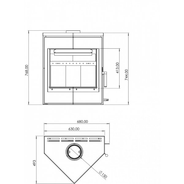 - Печь-камин оснащена системой чистое стекло, которая особенно актуальна для остекления большой площади. Дополнительно предусмотрена возможность регулировки подачи воздуха на первичный и вторичный дожиг.