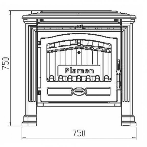 Компактная печь-камин Plamen Tena – прямоугольной формы, с квадратной передней стенкой и габаритами 750х750х520 мм. Размещение – пристенное, подключение – заднее, дымоход распространённого диаметра 150 мм. Чёрный эмалированный корпус выглядит своеобразно. Рельефный текстурированный рисунок на боковинах печи, узор на крышке и топке делает его элегантным и легко узнаваемым. Поверхность печи-камина приятна на ощупь. В нижней части дверцы – логотип Plamen, придающий изделию неповторимый фирменный колорит. Даже без огня этот камин будет выглядеть украшением дома. При всей демократичности цены, он впишется даже в дорогой и изысканный интерьер.