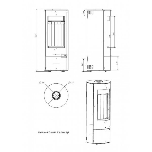Селигер это стальная печь-камин, оформленная в лучших традициях европейских дизайнеров. Круглый в основании корпус вытянут вверх, а во фронтальной части расположена дверца с закругленным стеклом. Ручка дверцы и все элементы управления спрятаны таким образом, чтобы не нарушать визуального единообразия.