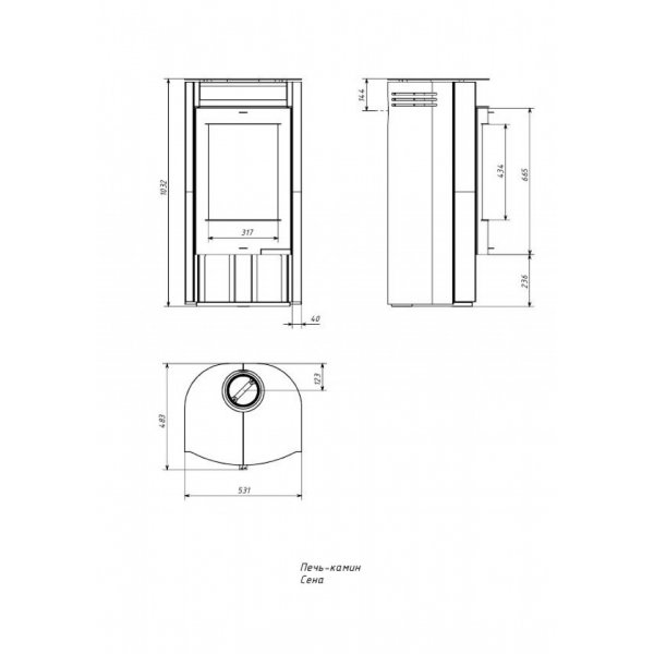 - Сена удобна в монтаже. Округлая задняя стенка позволяет установить печь как в углу, так и рядом с плоской поверхностью, выведя дымоход сверху или сзади - конструкция отопительного прибора предполагает оба варианта.
