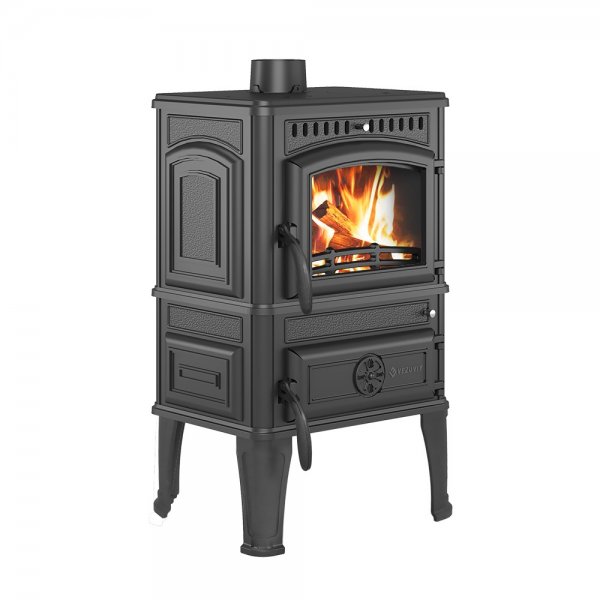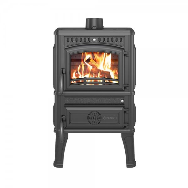 Печь-камин Везувий LV-12S "Антрацит" изготовлена из качественного жаростойкого чугуна (ГОСТ 1412-85) с толщиной стенок 6-8 мм. Вес печи составляет 155 кг. Модель рассчитана на обогрев помещений объёмом до 240 м³. Особенность LV-12S - в наличии варочной панели с конфорками в верхней части печи.