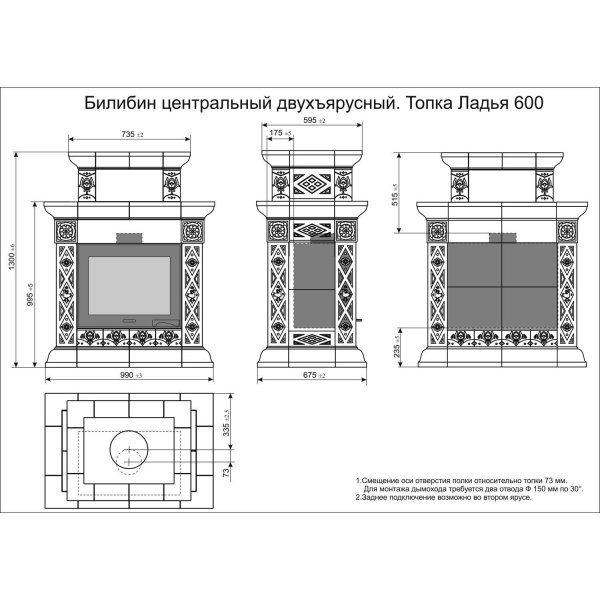 Печь керамическая дровяная Билибин центральный двухъярусный Осень