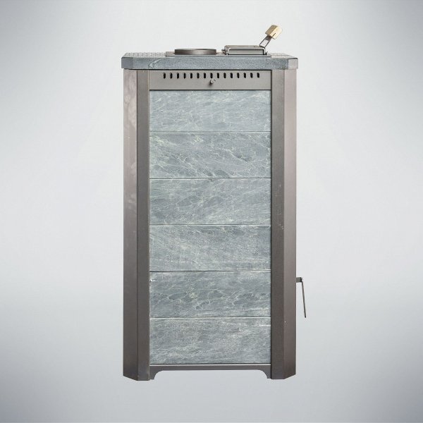 Облицовка камнем данной модели выравнивает тепловую волну, а также украшает помещение. Так же на печи установлена регулировка конвекционных каналов. За счет этих качеств в парном помещении получается мягкий микроклимат, что делает времяпрепровождение более приятным.