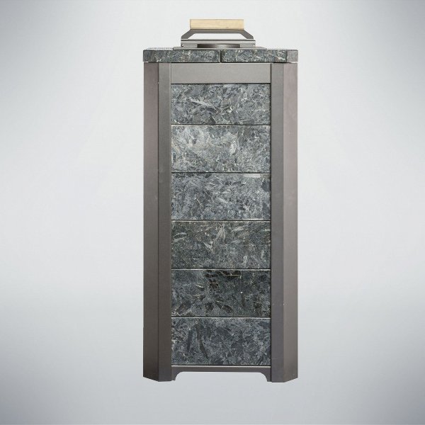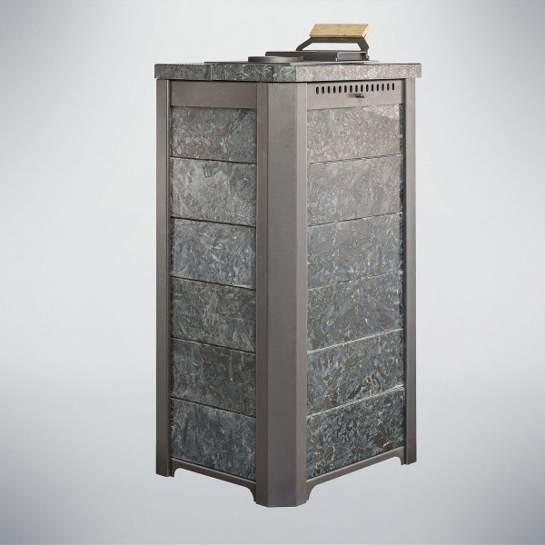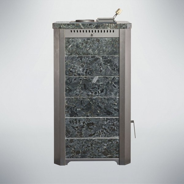 Облицовка камнем данной модели выравнивает тепловую волну, а также украшает помещение. Так же на печи установлена регулировка конвекционных каналов. За счет этих качеств в парном помещении получается мягкий микроклимат, что делает времяпрепровождение более приятным.