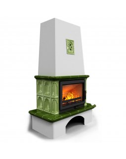 Камин с изразцами Модерн центральный Хвоя проверенный временем конвекционный камин производства Кимр..