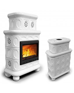 Изразцовый камин Медальон центральный двухъярусный Белый