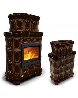 Изразцовый камин Медальон угловой двухъярусный Шоколад