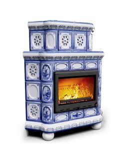 Изразцовый камин Медальон угловой Незабудки — камин в европейском стиле производства КимрПечь (г.Ким..