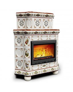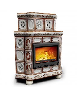 Изразцовый камин Медальон угловой Сакура — камин в европейском стиле производства КимрПечь (г.Кимры)..