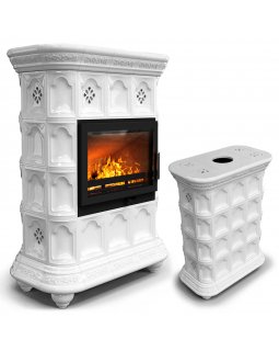 Изразцовый камин Истра центральный двухъярусный Белый украсит любой интерьер. Это недорогой конвекц..