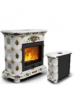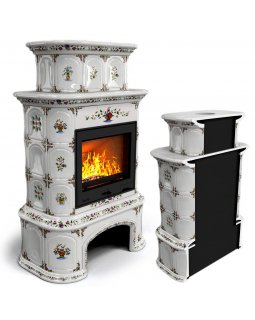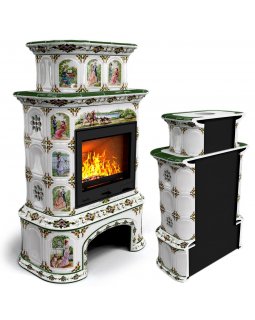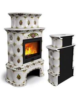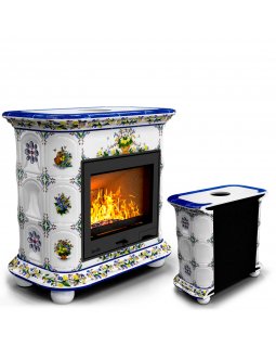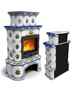 Изразцовый камин Прованс с дровником пристенный двухъярусный Лето проверенный временем конвекционный..