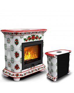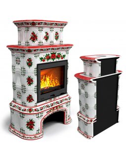 Изразцовый камин Прованс с дровником пристенный двухъярусный Маки проверенный временем конвекционный..