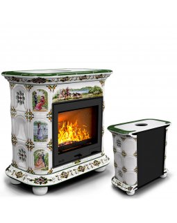 Изразцовый камин Прованс с дровником пристенный двухъярусный Луг проверенный временем конвекционный ..