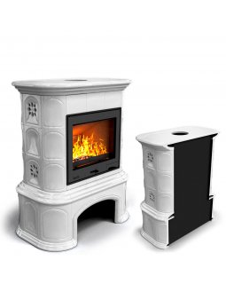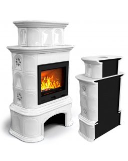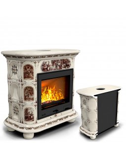 Прованс с дровником пристенный Белый. Печь для дома на дровах длительного горения