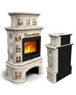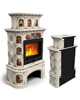 Изразцовый камин Прованс с дровником пристенный двухъярусный Звери проверенный временем конвекционны..