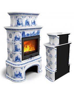 Изразцовый камин Прованс с дровником пристенный двухъярусный Голландия проверенный временем конвекци..