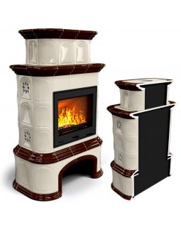 Изразцовый камин Прованс с дровником пристенный двухъярусный Шоколад- проверенный временем конвекцио..