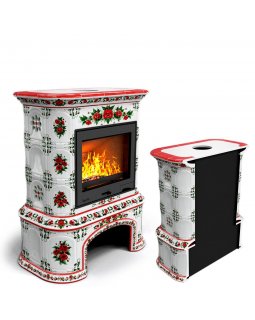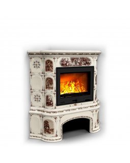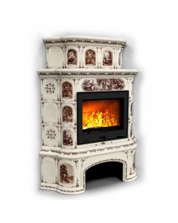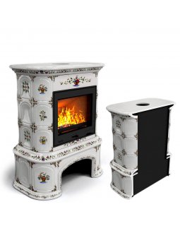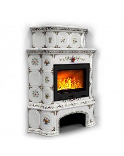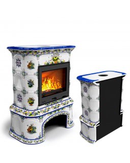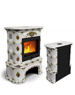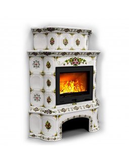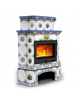 Изразцовый камин Прованс с дровником угловой двухъярусный Маки проверенный временем конвекционный ка..