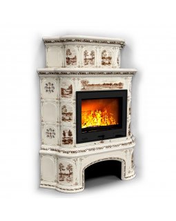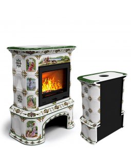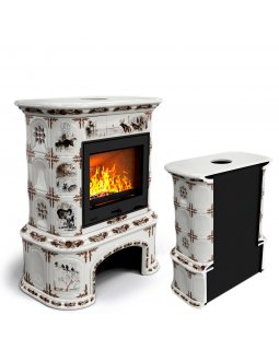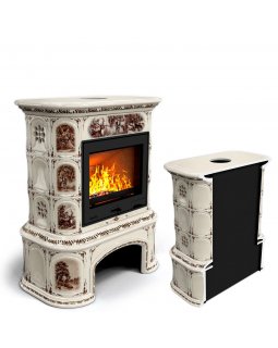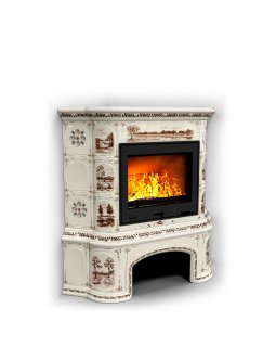 Изразцовый камин Прованс с дровником угловой двухъярусный Звери проверенный временем конвекционный к..