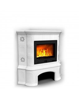 Изразцовый камин Прованс с дровником угловой двухъярусный Белый проверенный временем конвекционный к..