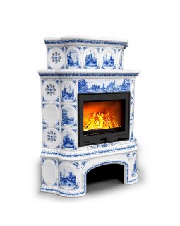 Изразцовый камин Прованс с дровником угловой двухъярусный Голландия проверенный временем конвекционн..