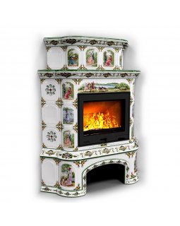 Изразцовый камин Прованс с дровником угловой двухъярусный Лето проверенный временем конвекционный ка..