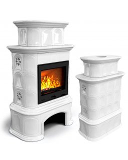 Изразцовый камин Прованс с дровником центральный двухъярусный Белый проверенный временем конвекционн..