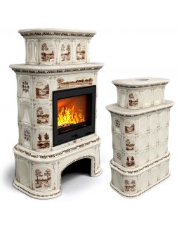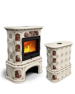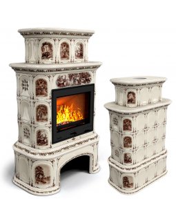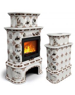 Изразцовый камин Прованс с дровником центральный двухъярусный Звери проверенный временем конвекционн..