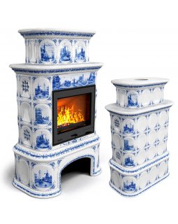 Изразцовый камин Прованс с дровником центральный Дельфт проверенный временем конвекционный камин про..