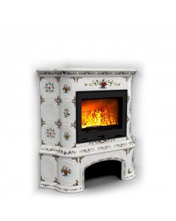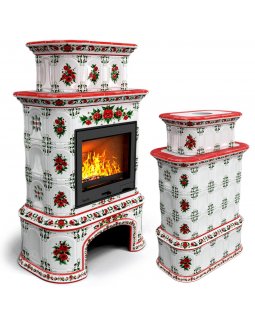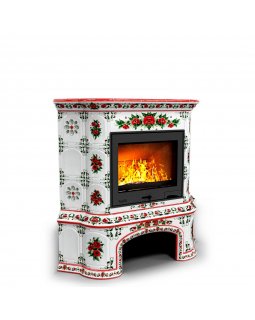 Изразцовый камин Прованс с дровником центральный двухъярусный Маки проверенный временем конвекционны..