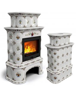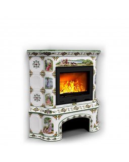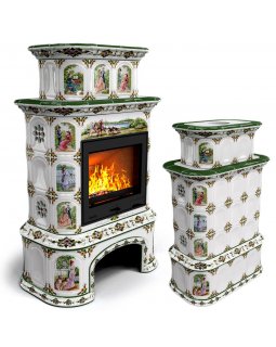 Изразцовый камин Прованс с дровником центральный двухъярусный Лето проверенный временем конвекционны..