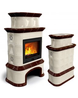 Изразцовый камин Прованс с дровником центральный двухъярусный Шоколад проверенный временем конвекцио..