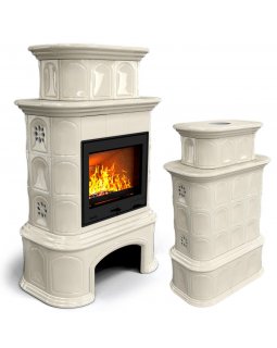 Изразцовый камин Прованс с дровником центральный двухъярусный Ваниль проверенный временем конвекцион..