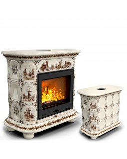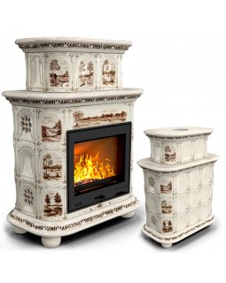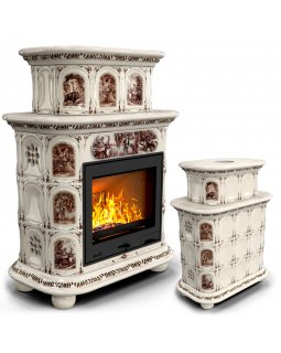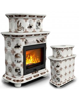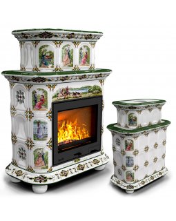 Изразцовый камин Прованс центральный двухъярусный Звери проверенный временем конвекционный камин про..