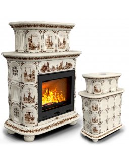 Изразцовый камин Прованс центральный Ваниль проверенный временем конвекционный камин производства Ки..