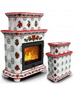 Изразцовый камин Прованс центральный двухъярусный Маки проверенный временем конвекционный камин прои..