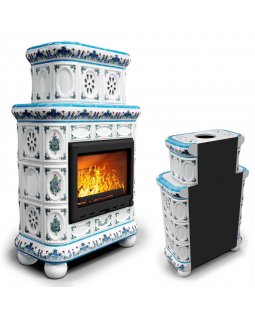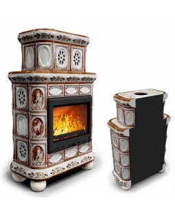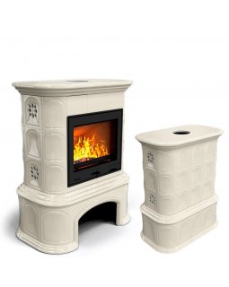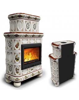Изразцовая печь на дровах длительного горения Прованс с дровником центральный Ваниль. Камин для дачи