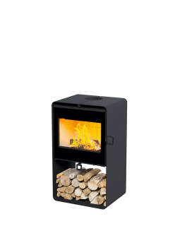 Минималистичный корпус печи-камина имеет встроенный дровник и изготовлен из стали, которая окрашена ..