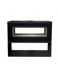 Горизонтальная печь-камин с двумя огромными безрамочными стеклами и аккуратной подставкой-дровником ..
