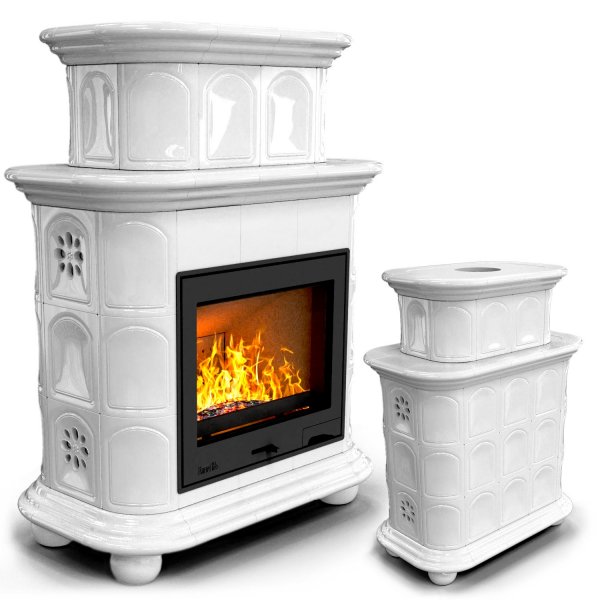 Изразцовый камин Прованс центральный двухъярусный Белый проверенный временем конвекционный камин производства КимрПечь (г.Кимры).