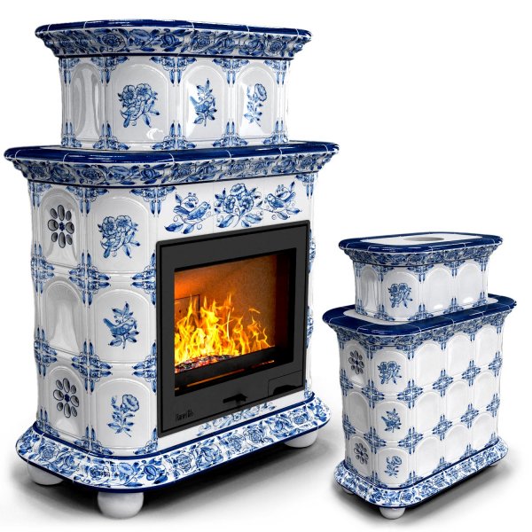 Изразцовый камин Прованс центральный двухъярусный Дельфт проверенный временем конвекционный камин производства КимрПечь (г.Кимры).
