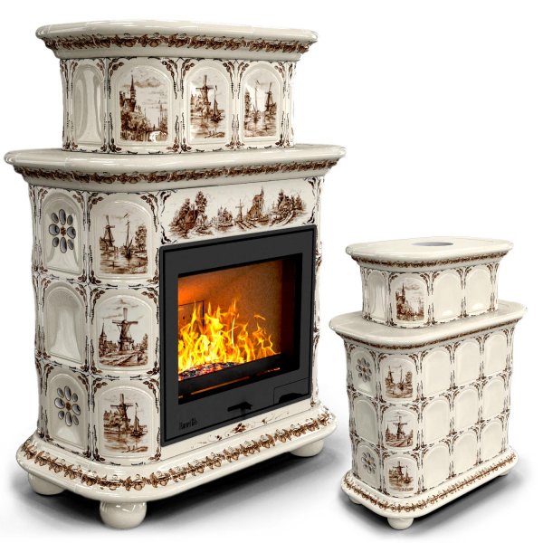 Изразцовый камин Прованс центральный двухъярусный Голландия проверенный временем конвекционный камин производства КимрПечь (г.Кимры).