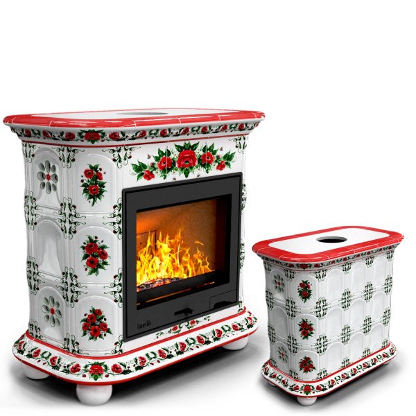 Изразцовый камин Прованс центральный Маки проверенный временем конвекционный камин производства КимрПечь (г.Кимры).