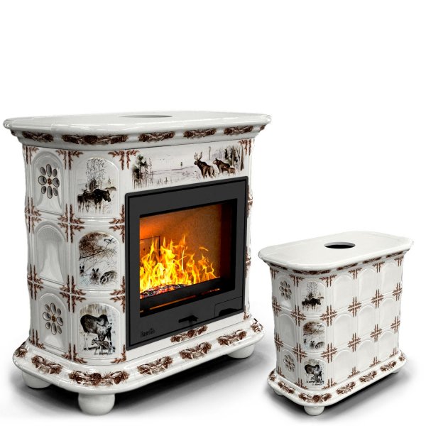 Изразцовый камин Прованс центральный Зима в лесу проверенный временем конвекционный камин производства КимрПечь (г.Кимры).