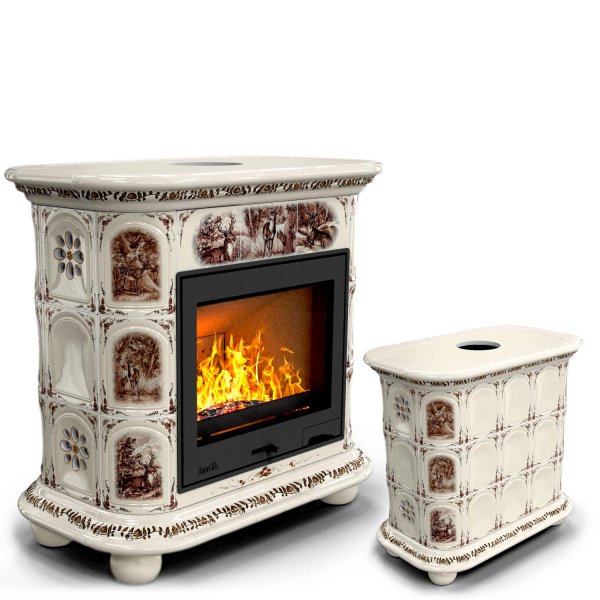Изразцовый камин Прованс центральный Звери проверенный временем конвекционный камин производства КимрПечь (г.Кимры).